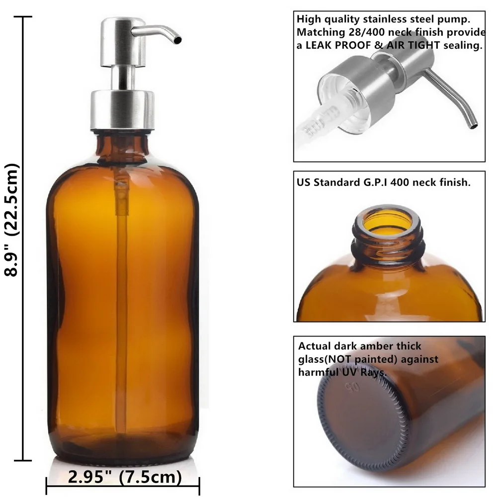 Special Offer 4 шт. 500 мл янтарная стеклянная бутылка с насосом из нержавеющей стали, насос для лосьона для ванной комнаты, эфирные масла, шампунь, дозатор ж... Discount 9% Today!