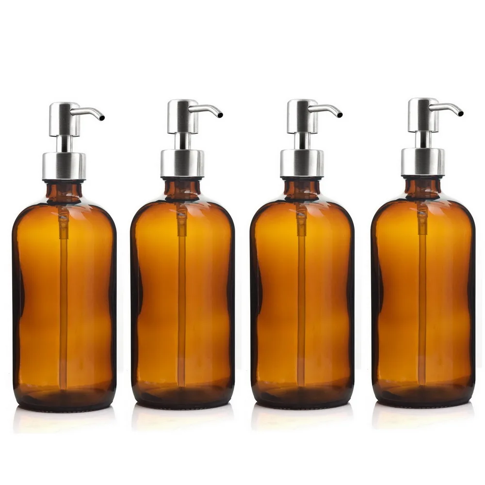 . [Скидка 9%] Купить 4 шт. 500 мл янтарная стеклянная бутылка с насосом из нержавеющей стали, насос для лосьона для ванной комнаты, эфирные масла, шампунь, дозатор ж... Продажа Дешево.
